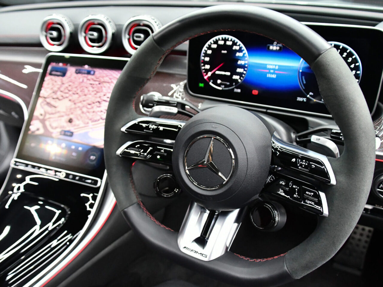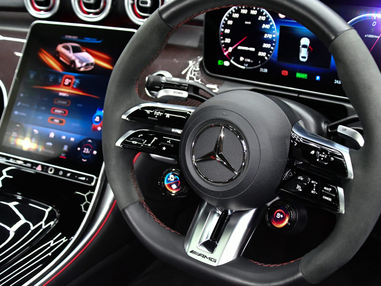 C 63 Sのハートは4.0リッターツインターボV8エンジン。最高出力510馬力、最大トルク700Nmという圧倒的なパワーは、0-100km/h加速わずか3.8秒の世界へ導きます。AMGパフォーマンス4WDシステムは、限界の走行性能と日常の快適性を高次元で両立させています。デュアルクラッチトランスミッションによる敏捷なギアチェンジと、電子制御サスペンションの精密な制御が、ドライバーに至福の走行体験をもたらします。まさに、速さへの執念が結実したエンジニアリングの傑作です。