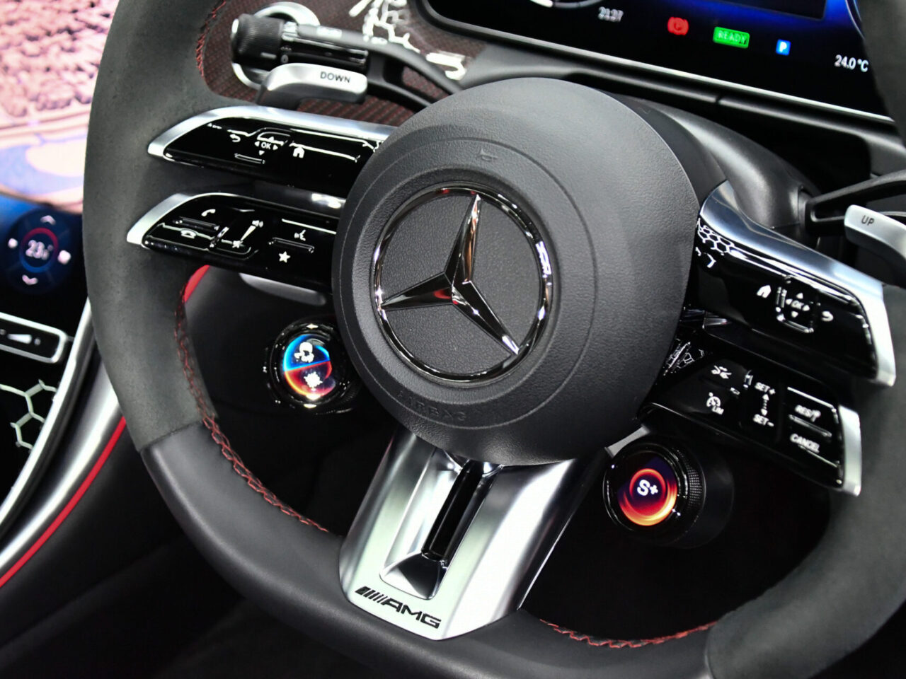室内空間は、本革を贅沢に使用した上質さで満たされています。デュアルディスプレイの最新インフォテインメントシステムは、直感的な操作性と豊富な機能を提供。アダプティブマルチビームLEDヘッドライトが夜間走行を知的に照らし、パノラミックサンルーフが開放感をもたらします。12.3インチのデジタルドライバーズディスプレイは、走行情報をドライバー目線で提示。ハーマンカードンのプレミアムオーディオシステムが上質な音響体験を実現します。プリセーフティシステムなど、最先端の安全装備も完備された、至高のコックピットです。