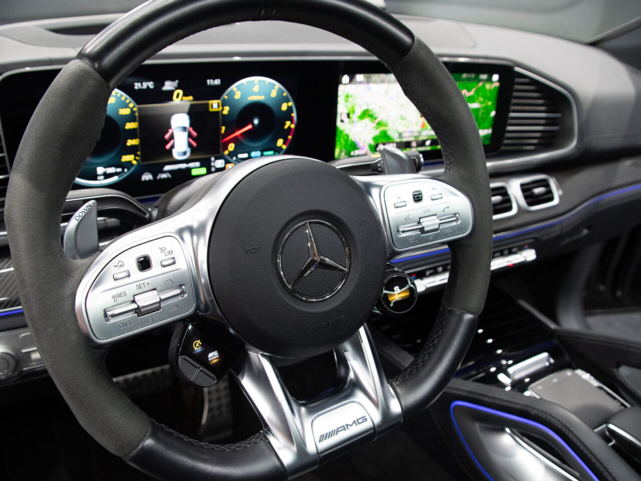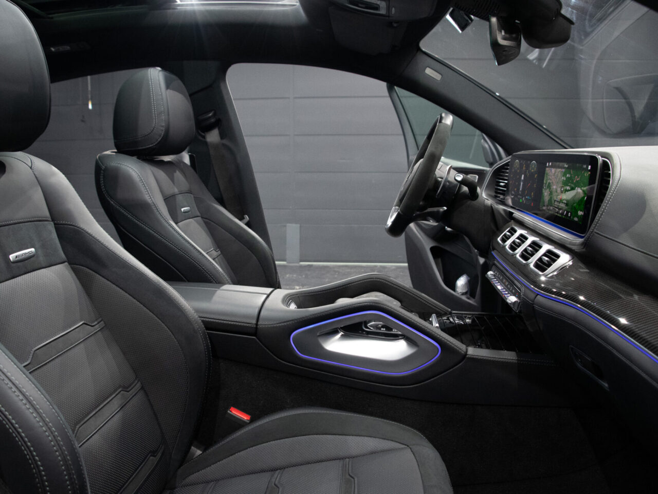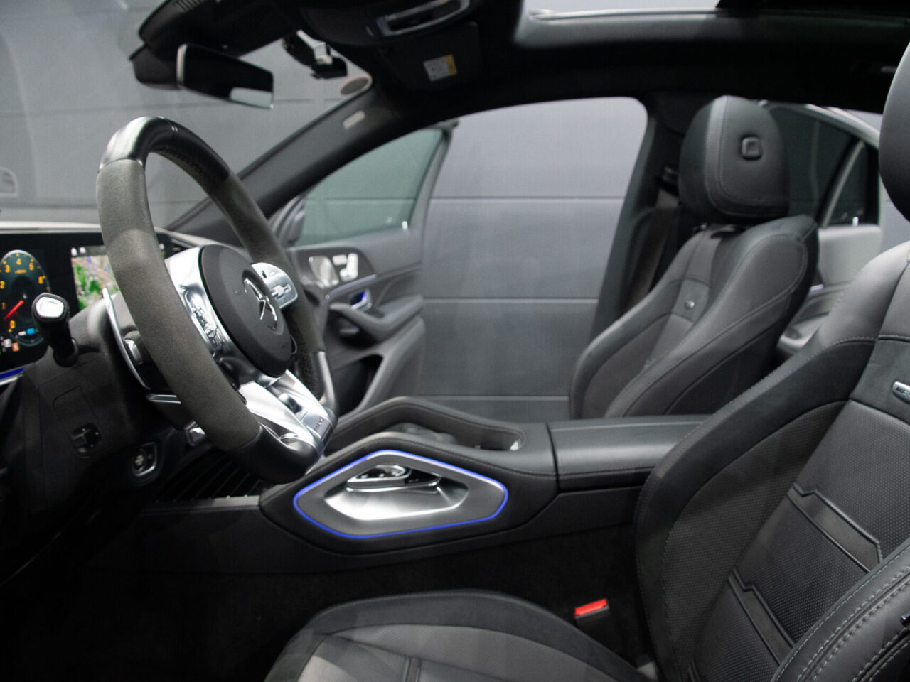 オブシディアンブラックのボディに映える、最先端の装備群が厳選されています。デジタルコックピット、AMGパフォーマンスステアリング、パノラミックスライディングルーフが上質な空間を演出。シートヒーター・ベンチレーション機能付きAMGパフォーマンスシート、プレミアムサウンドシステム、そして最新鋭の安全運転支援システムが、快適性と安心をもたらします。エアサスペンションにより、スポーティながら抜群の乗り心地を実現しています。