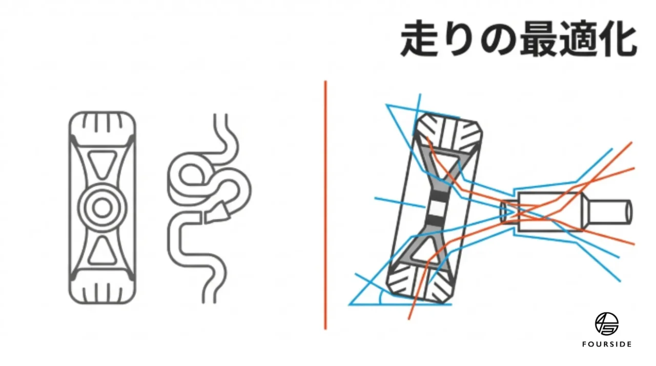 - ジャイロ効果の低減: 回転する物体が軽くなることで、ステアリングを切った瞬間の「重さ」が取れ、ノーズが吸い付くようにインを向くようになります。