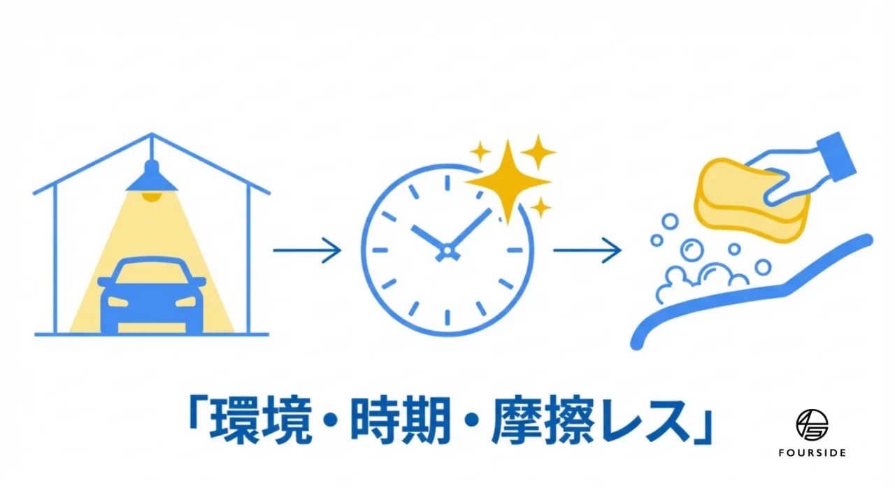 シミを作らないためには、技術よりも「環境」と「タイミング」の管理が重要です。明日からのカーライフで、以下の3点を意識するだけで、数年後のボディーコンディションに劇的な差が生まれます。