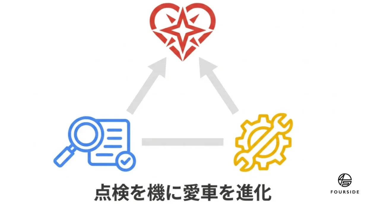- 新しい「コンセプト」の構想: 次の2年間で何をアップデートするか。車検で見つけたヒントをもとに、自分だけのカスタマイズを夢想する楽しみ。