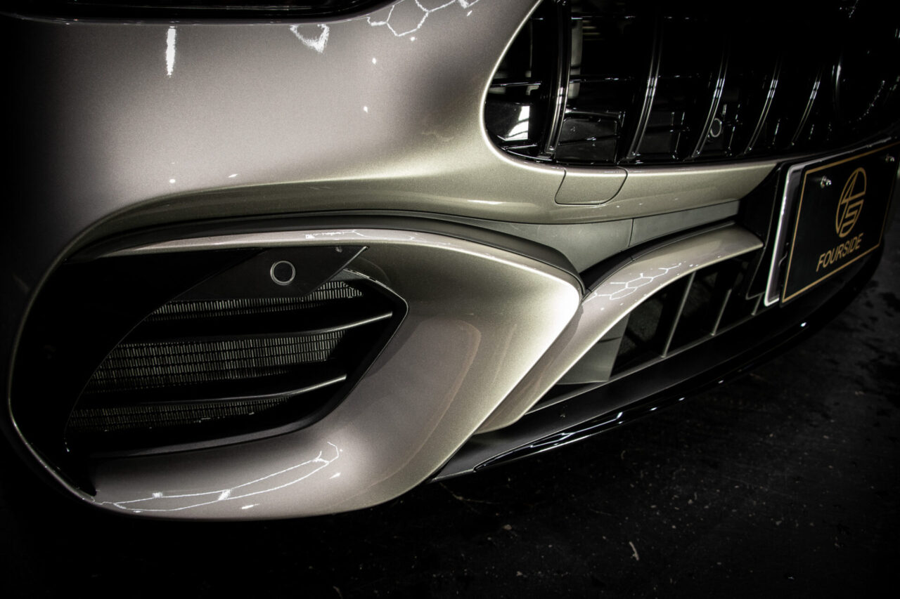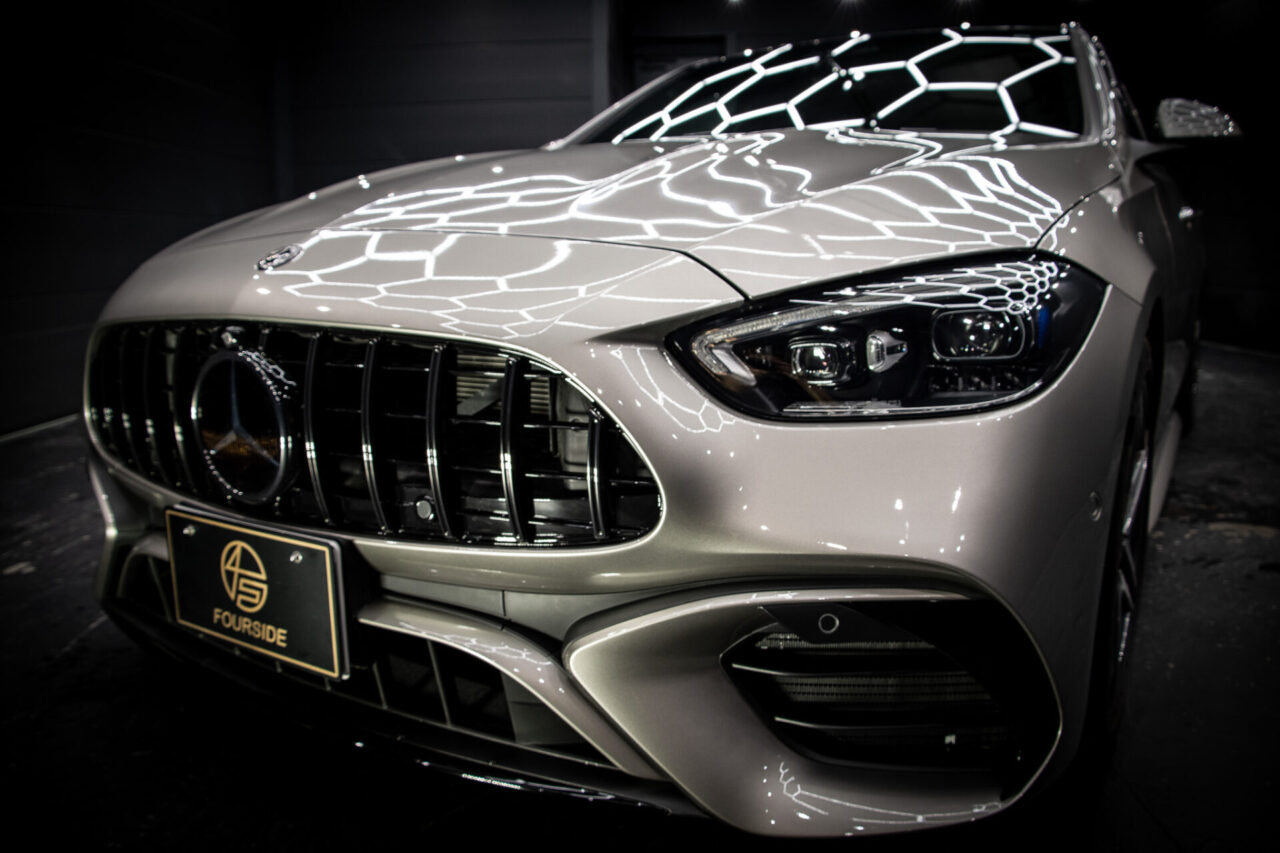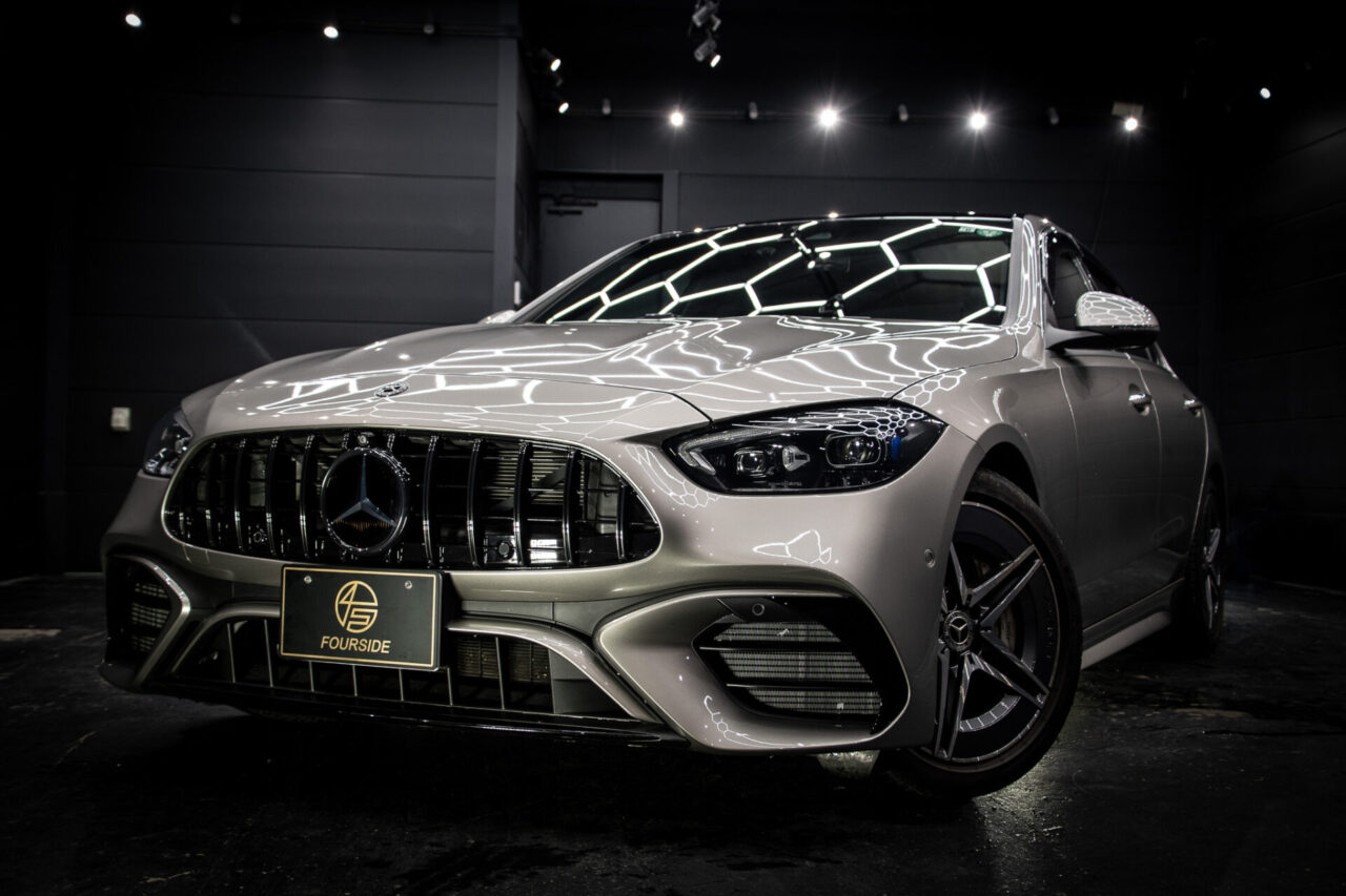 社外品バンパーに交換し、 愛車がC63さながらの精悍なフロントフェイスへと生まれ変わります。